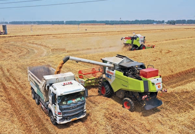 农发行河北省分行支持的金沙河农业合作社在收割小麦。