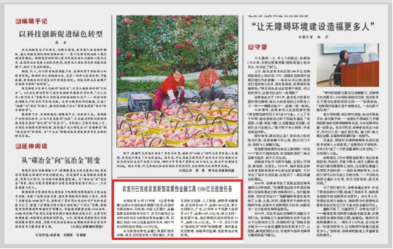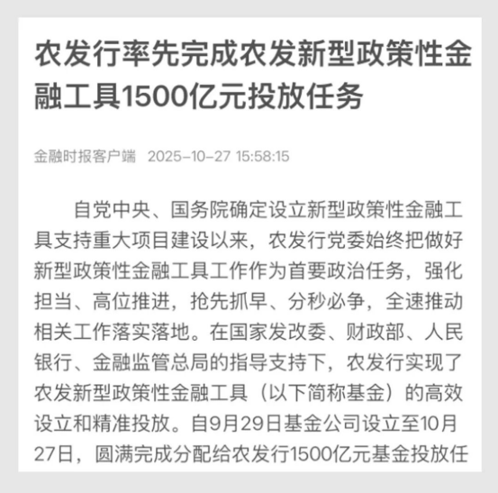 人民日报:农发行已完成农发新型政策性金融工具1500亿元投放任务