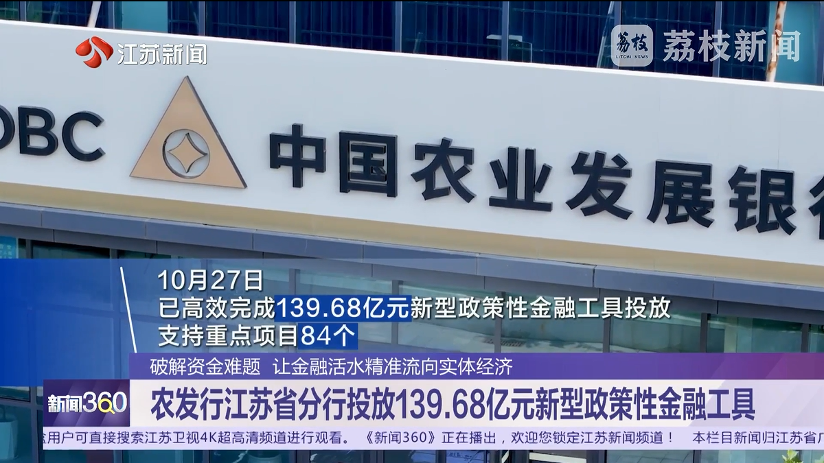 3、江苏省分行:江苏新闻《农发行江苏省分行投放139.68亿元新型政策性金融工具,为江苏稳经济注入强引擎》