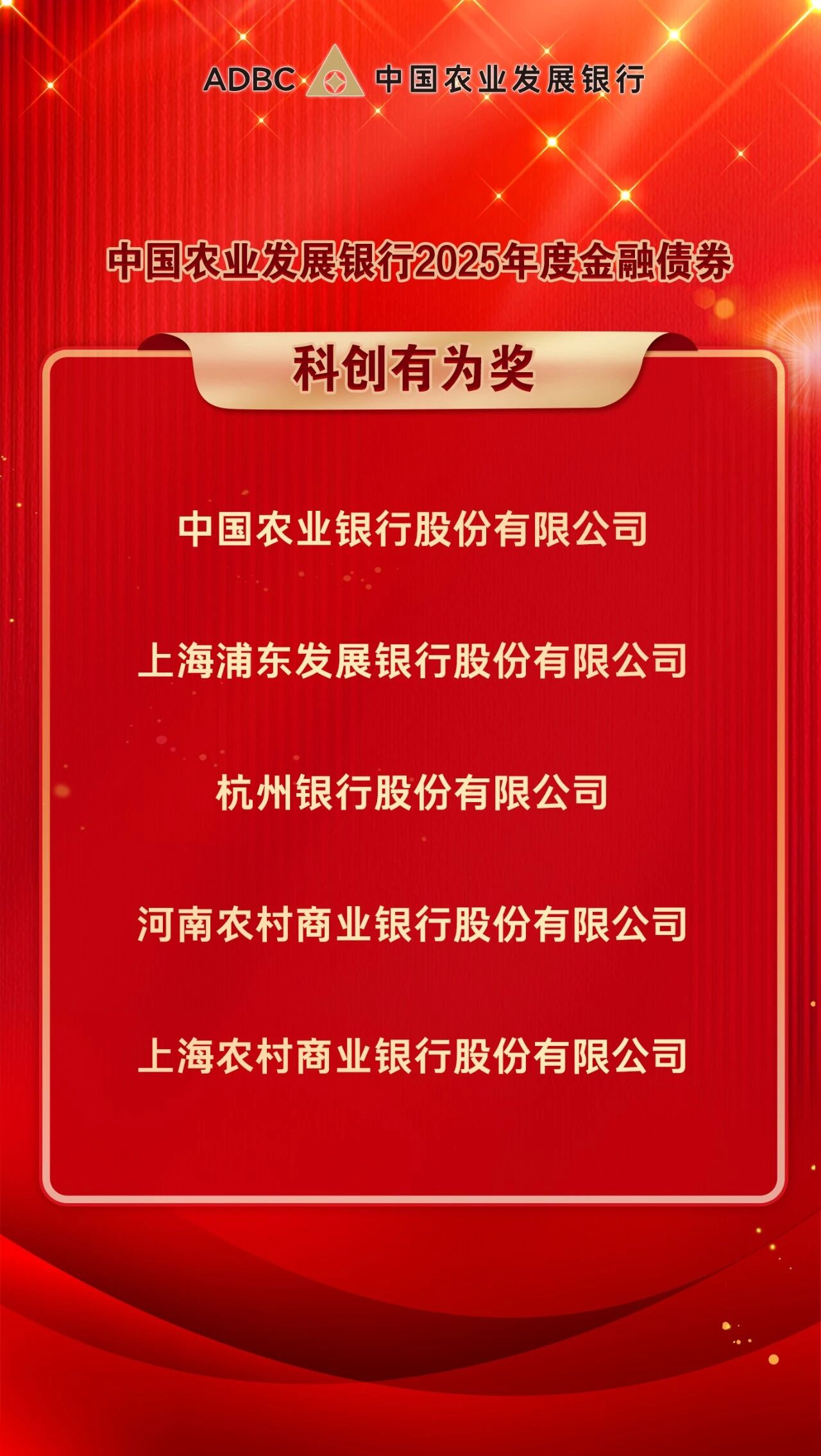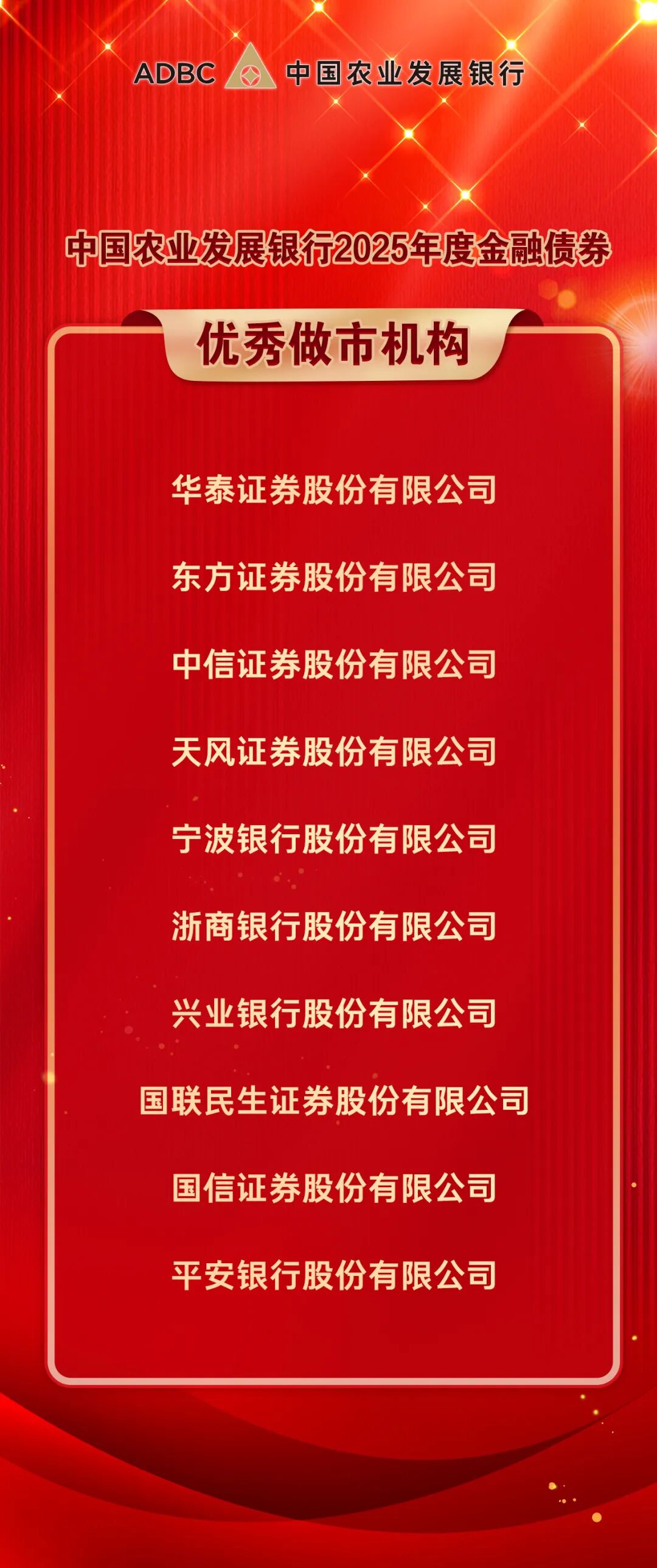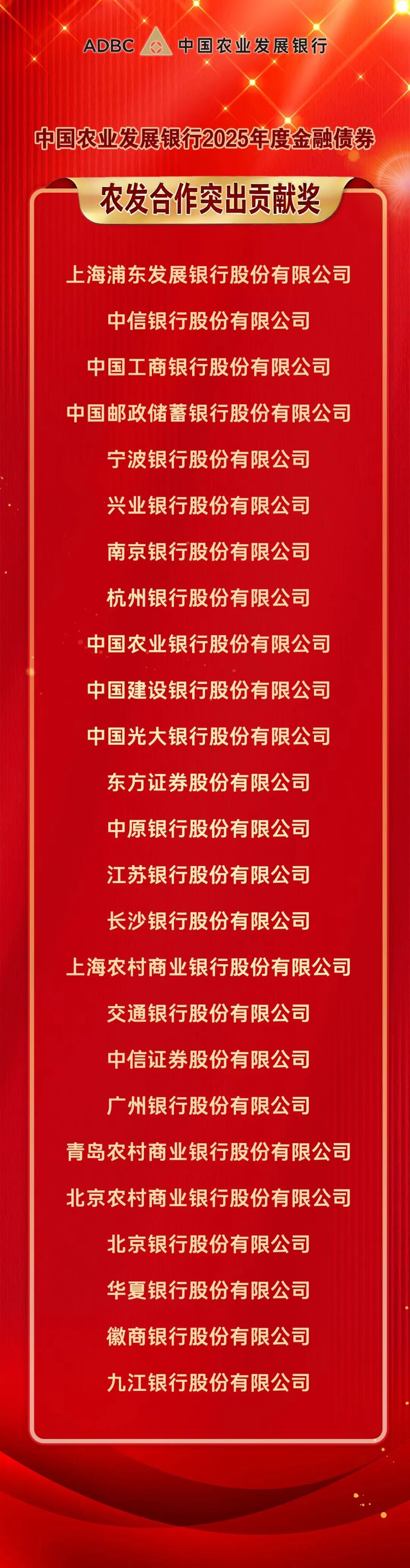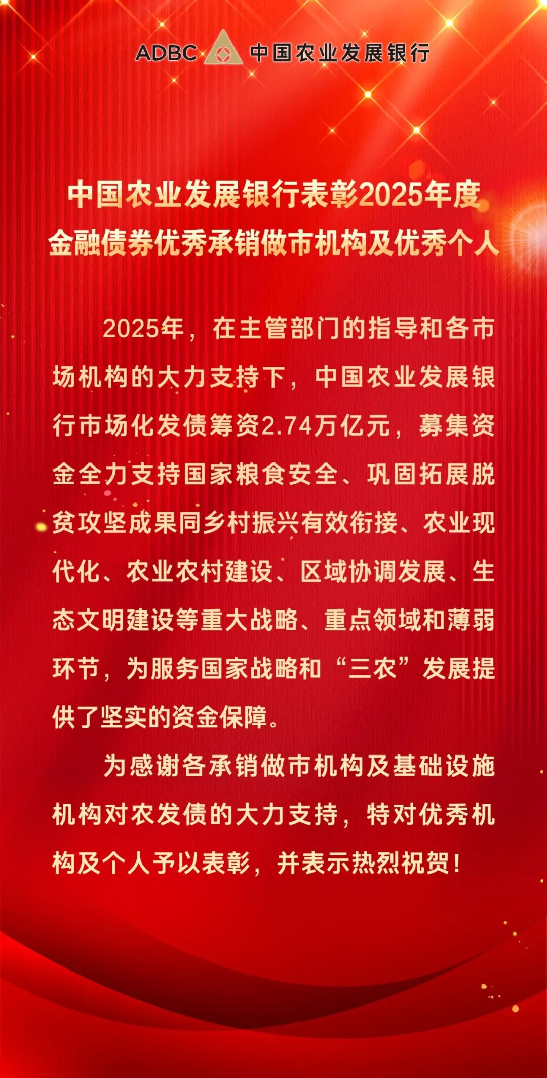 中国农业发展银行表彰2025年度金融债券优秀承销做市机构及优秀个人