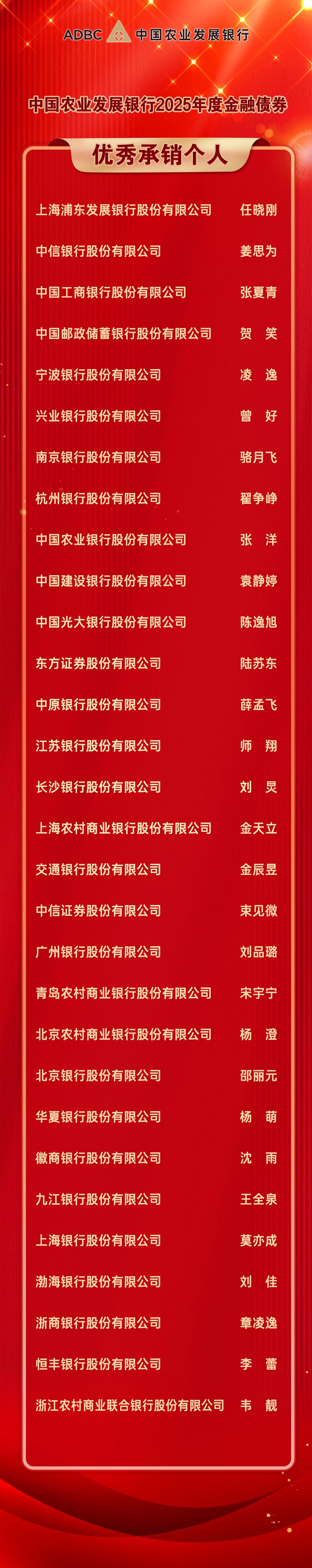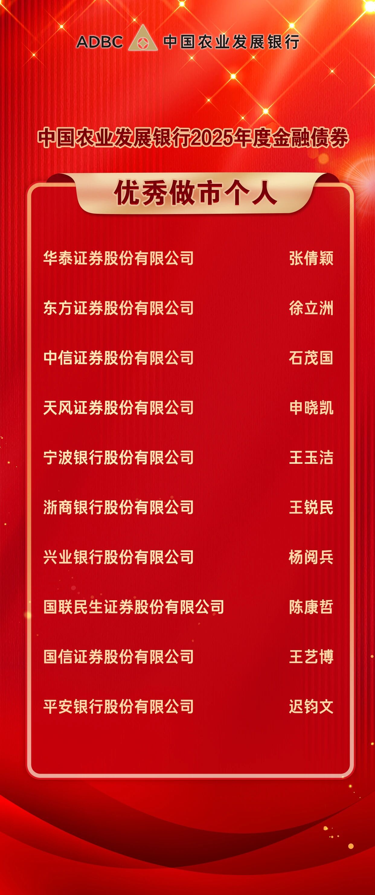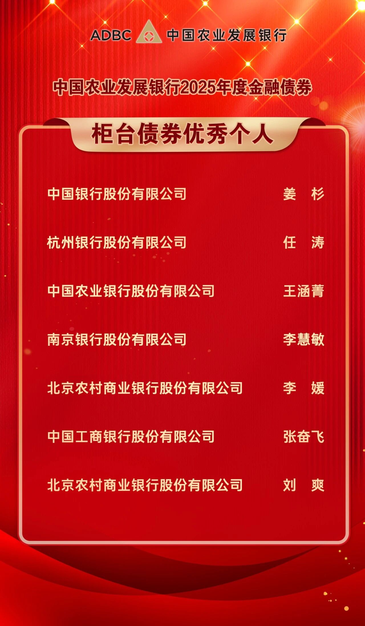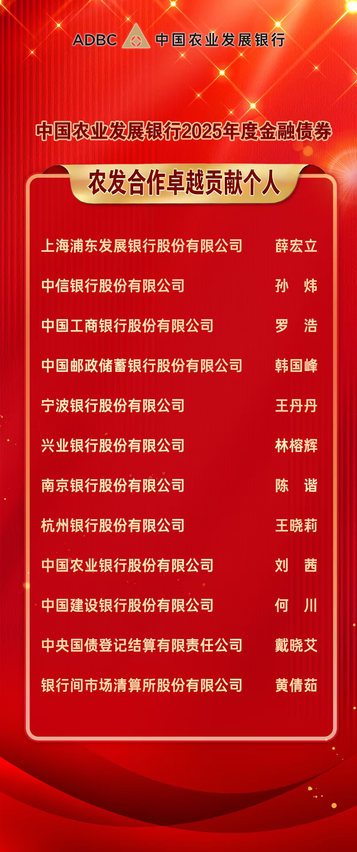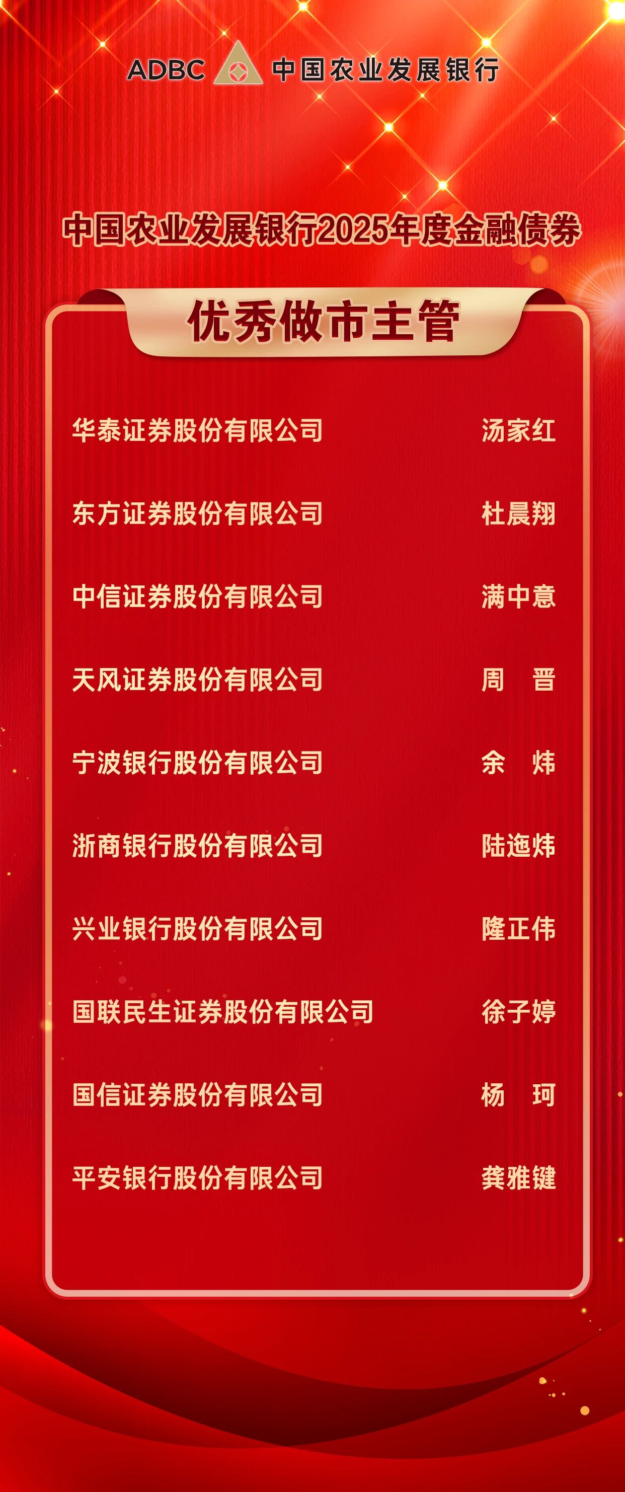 中国农业发展银行表彰2025年度金融债券优秀承销做市机构及优秀个人